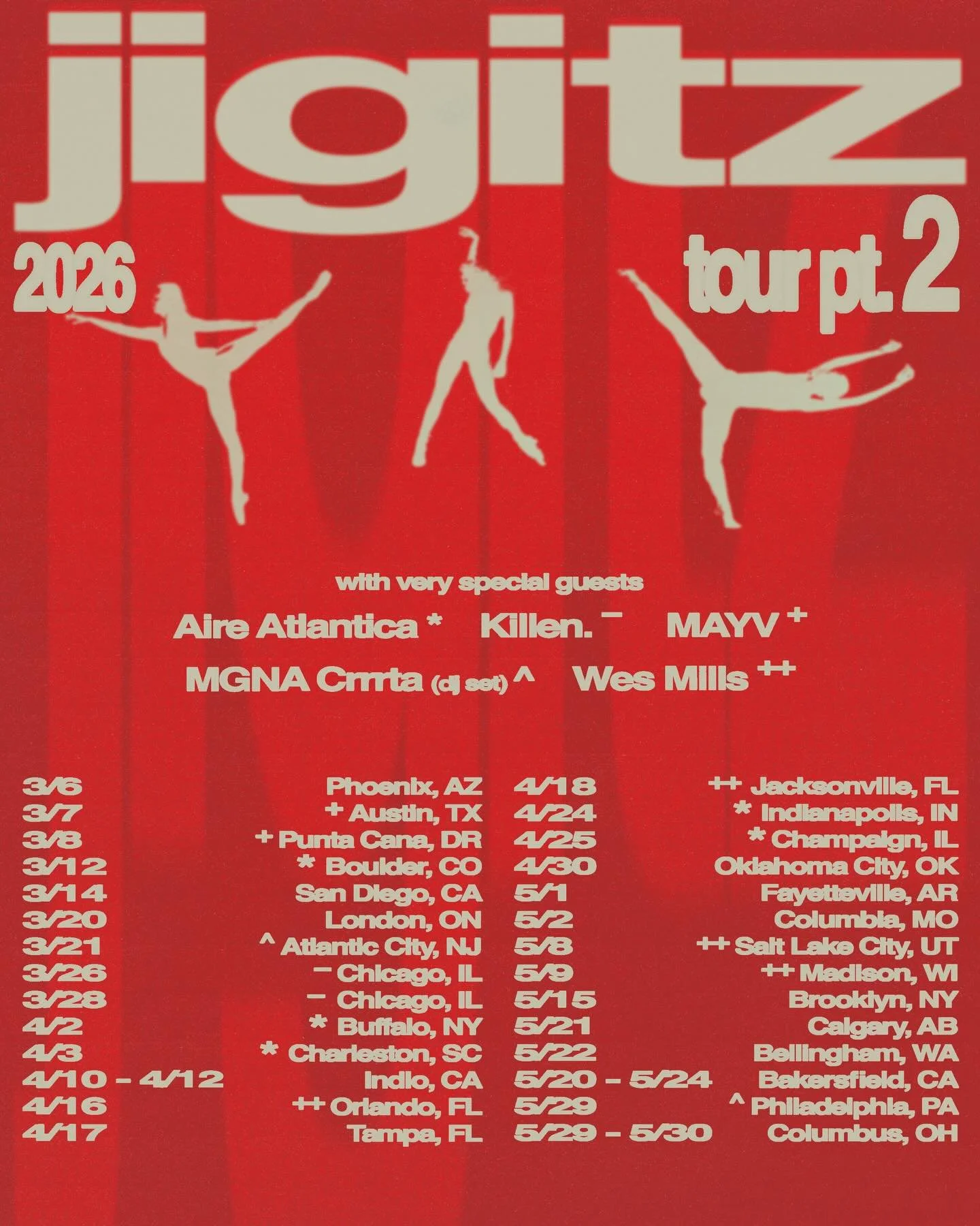 Make sure to catch Jigitz on his North American Tour with direct support from Aire Atlantica, Killen., MAYV, MGNA Crrrta, and wes mills in select cities near you. Find the full list of dates below and all of your ticket information directly on his site HERE.